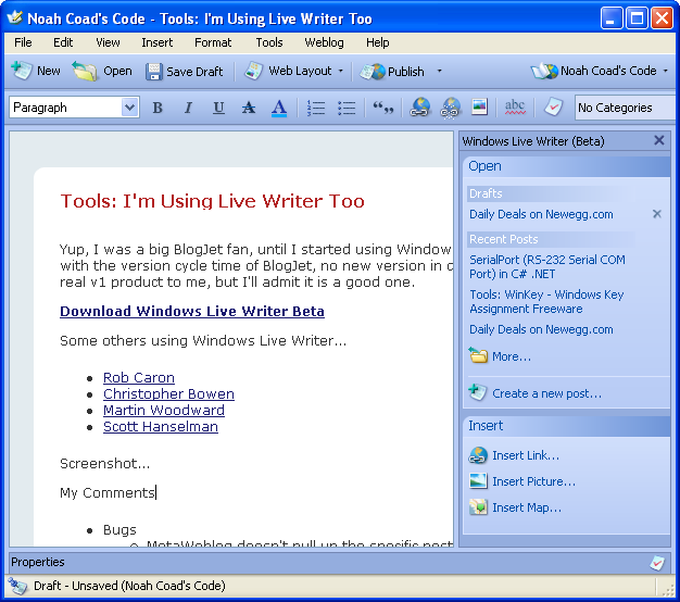 I’m also experimenting with using Word 2007 as a desktop blogging tool, so this may or may not successfully arrive on my blog.